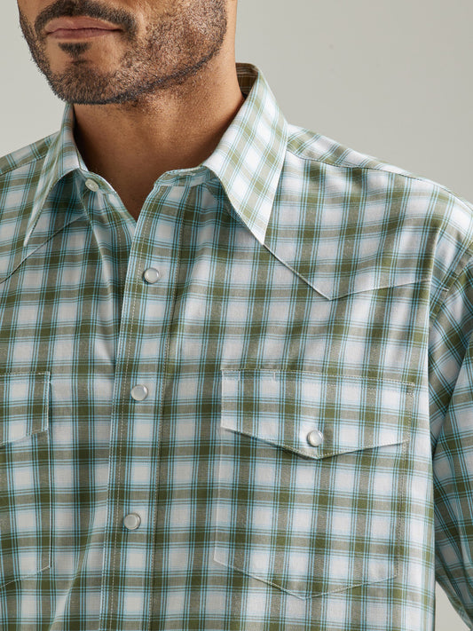 Wrangler Men's Big & Tall Green Plaid Western Shirt