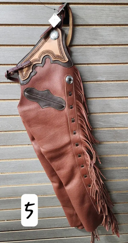 Rockin' Y Adult Leather Chinks - Two Tone & Conchos (#4)