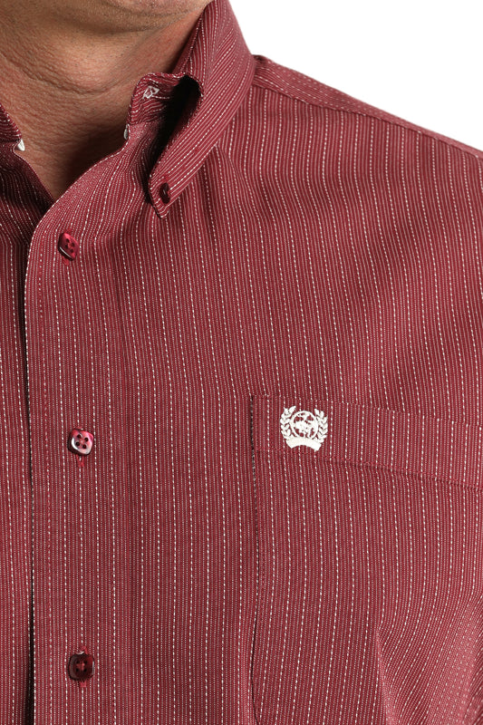 Cinch Men's Burgundy Dobby Stripe Western Shirt