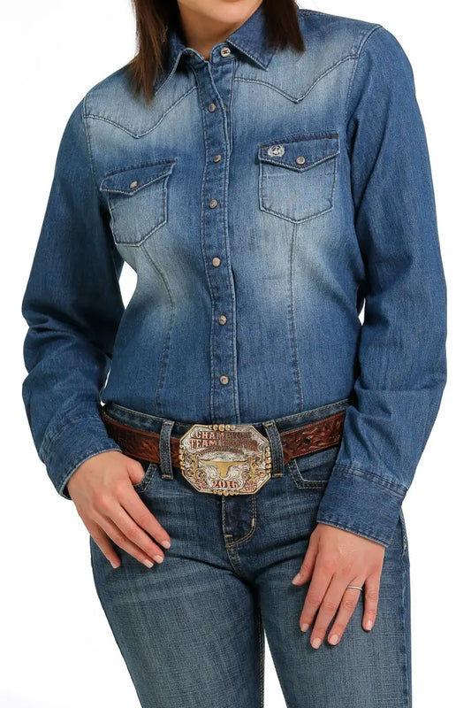 Cinch Women's Dark Stonewash Denim Western Shirt