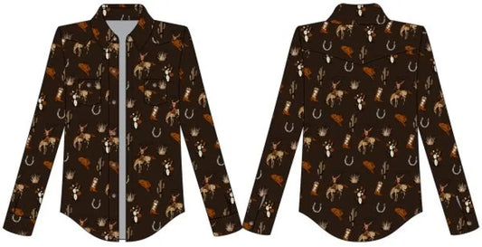 Rock & Roll Girl's Brown Pint Snap Western Shirt