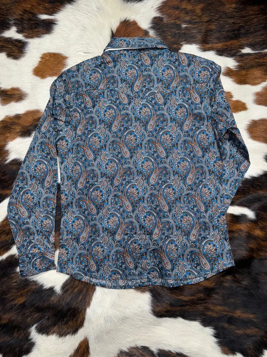 Panhandle Girl's Blue & Bronze Paisley Western Shirt