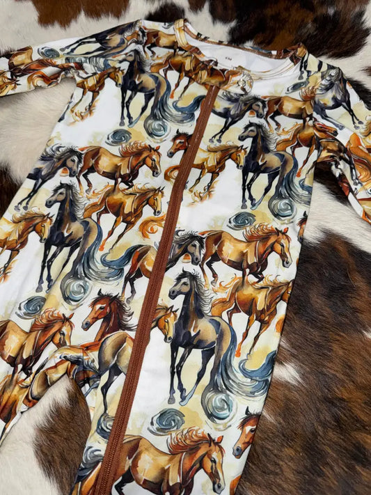 Cowgirl Hardware Infant Toned Natural Wild Horse Romper