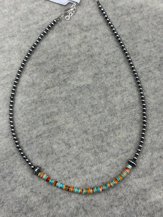 14" Lapis & Turquoise Heishi w/Sterling Silver Beads