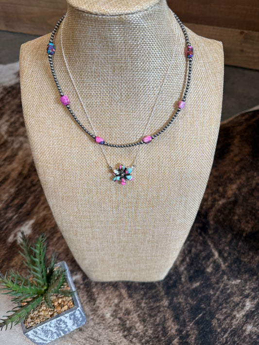 Sterling Silver Pearls with Turquoise & Variscite Rondelles Necklace