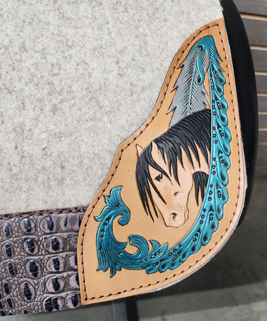 SaddleRight Legacy Saddle Pad 28" x 32" - Teal Suede & Mahogany Grizzly