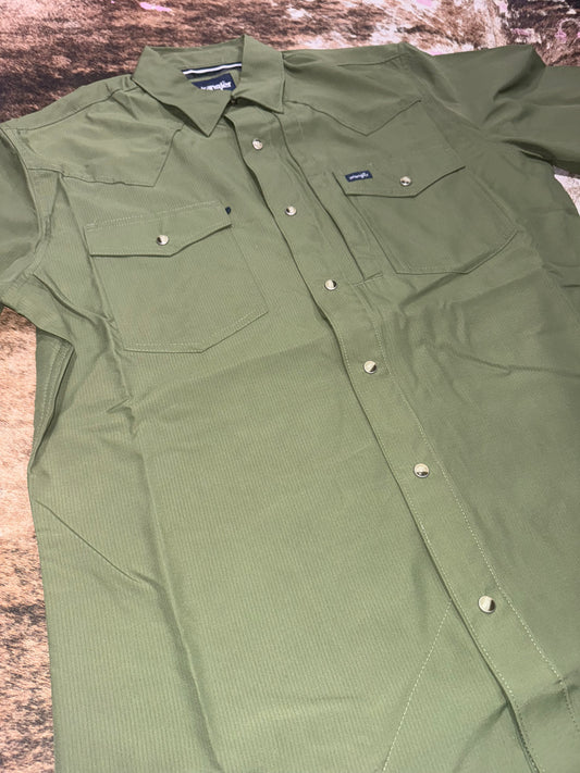 Wrangler Men's Big & Tall Solid Green Performance Short Sleeve Western Shirt