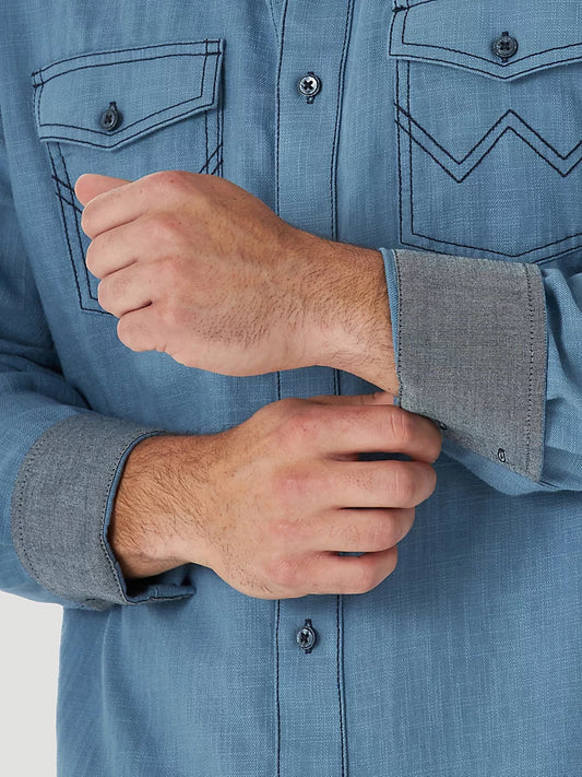 Wrangler Men's Big & Tall Retro Modern Fit Blue Denim Western Shirt