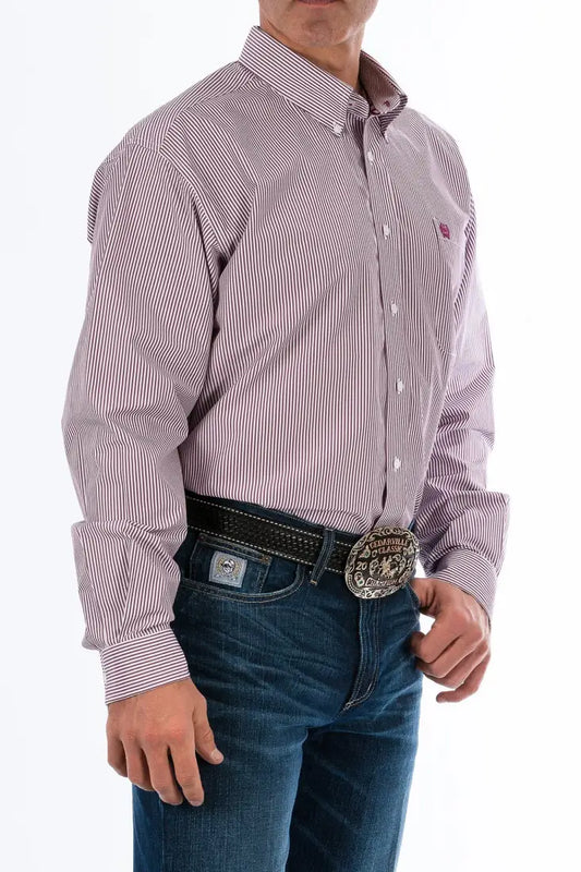 Cinch Men's Tencel Burgundy Pinstripe Western Shirt