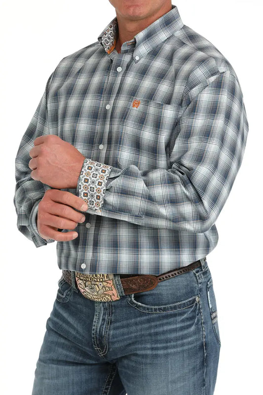 Cinch Men's Blue/Gray/Copper Plaid Western Shirt