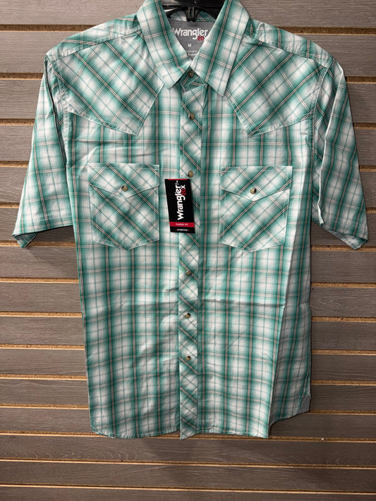 Wrangler Men's Green Plaid 20X Competition Short Sleeve Western Shirt