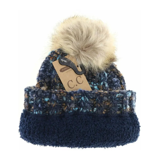 C.C Beanie Fuzzy Lined Flecked Fur Pom Beanie