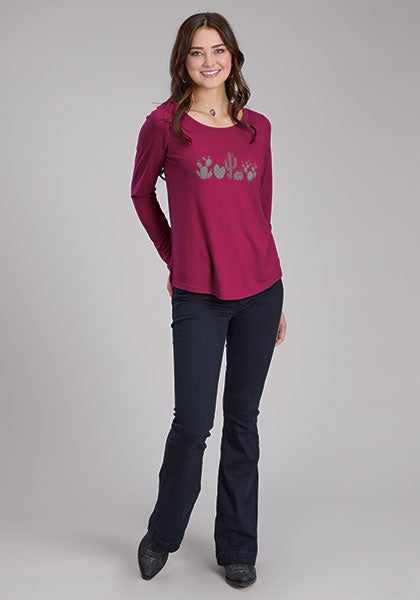 Roper Women's Wine Cactus Long Sleeve T-Shirt