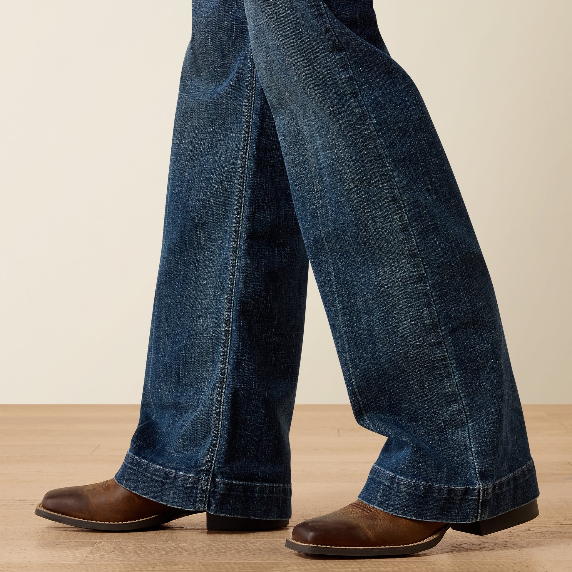 - Gradually widens from the knee to 21 ½" wide leg opening