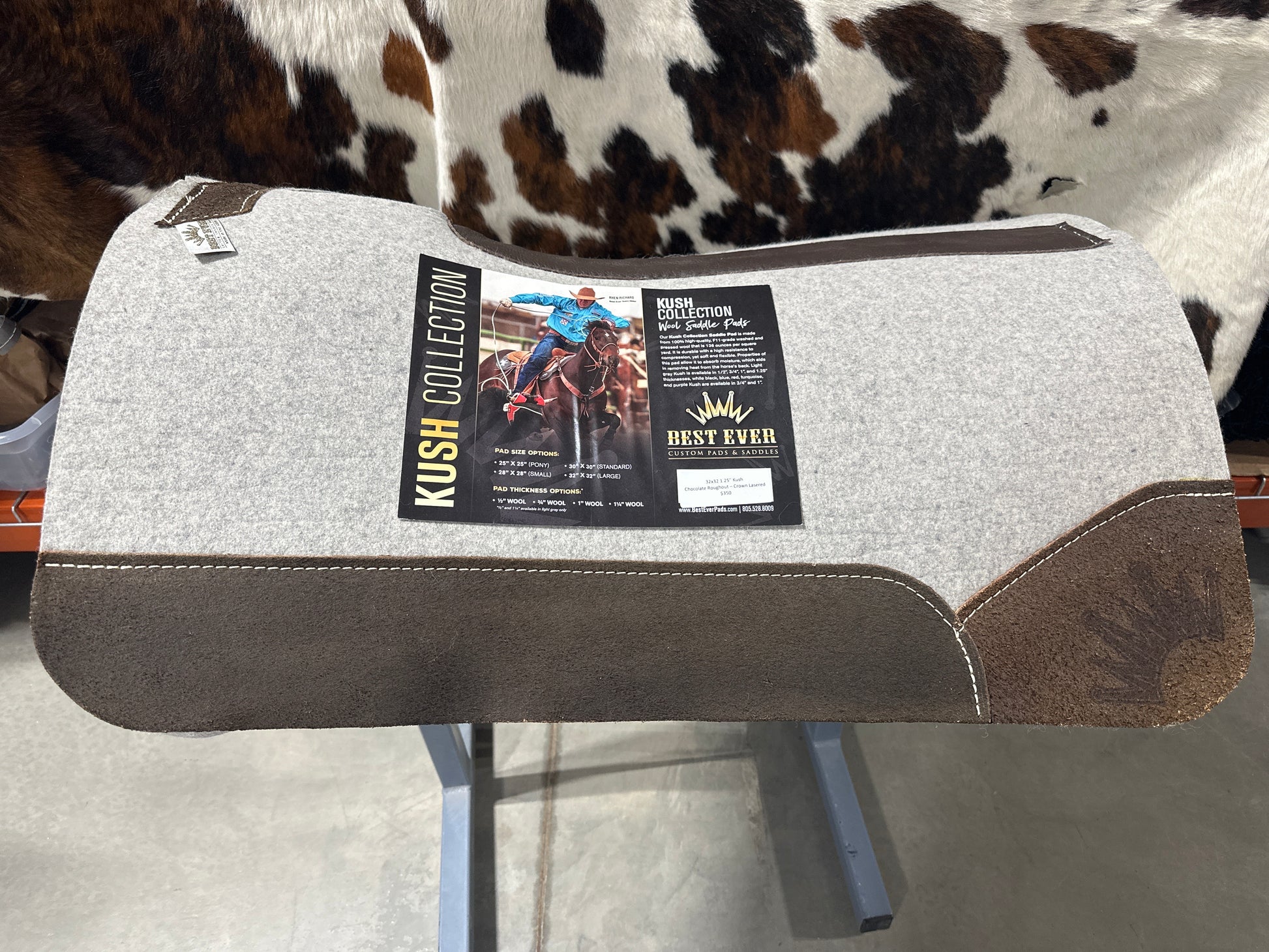 Best Ever Kush Saddle Pad - Chocolate Roughout Lasered Crown (1.25" thick, 32"x32")