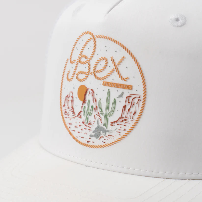 Meet the Sierra26 in Quartz/Tan, a fresh take on one of our best-selling styles, reimagined for Spring/Summer ’26. This updated 5-panel curved bill trucker features a clean white polyester front and mesh panels for lightweight comfort and all-day wear. The tan suede undervisor and matching raised western patch with crisp detailing add a touch of rugged refinement, making it the perfect everyday cap for warm-weather adventures and easygoing style.