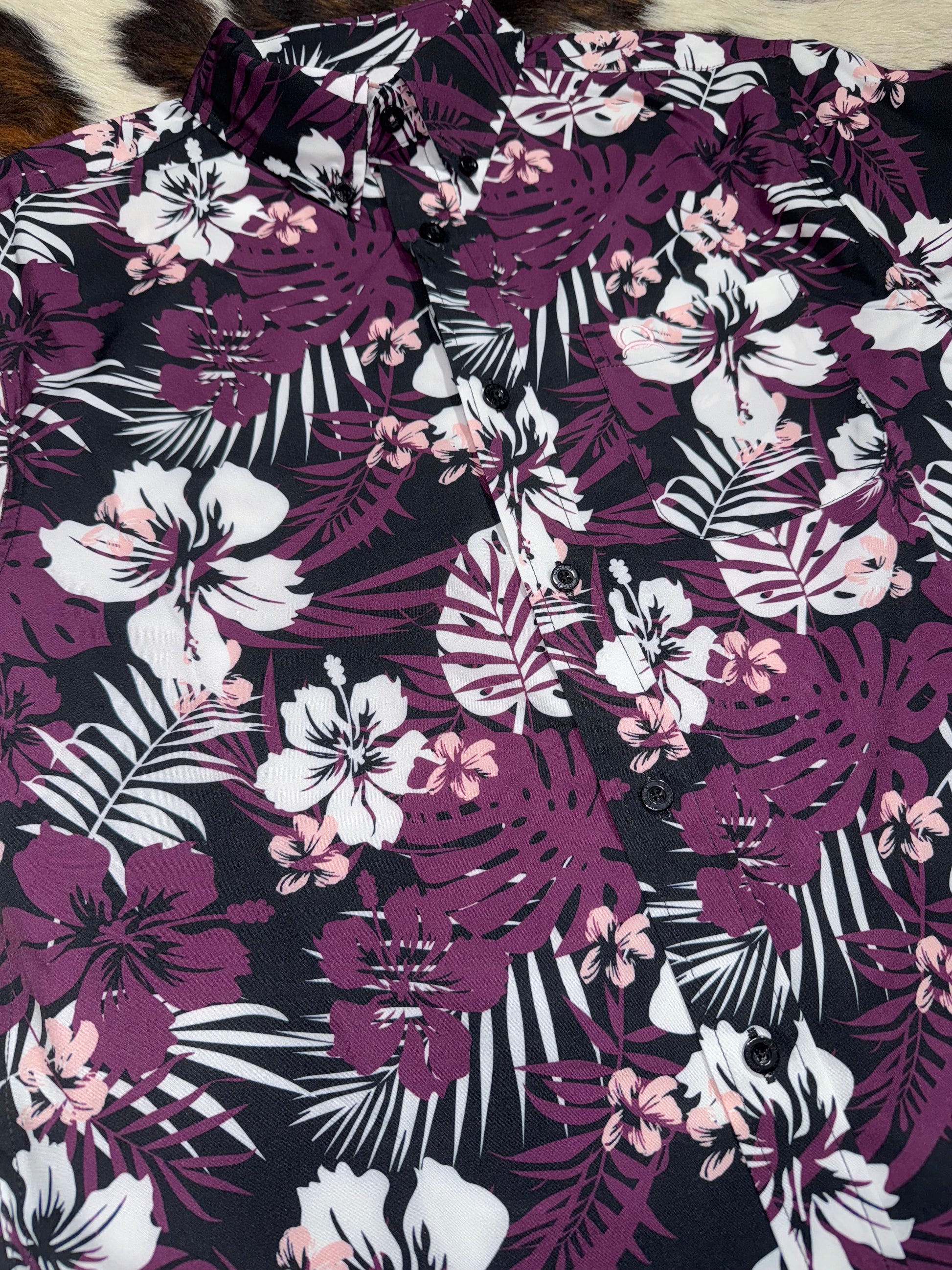 Classic style meets summer-ready Hawaiian spirit with our lightweight multicolor hibiscus printed Arenaflex. This stretch friendly shirt features poly-spandex construction with an open left front pocket, embroidered CINCH logo, and black buttons.