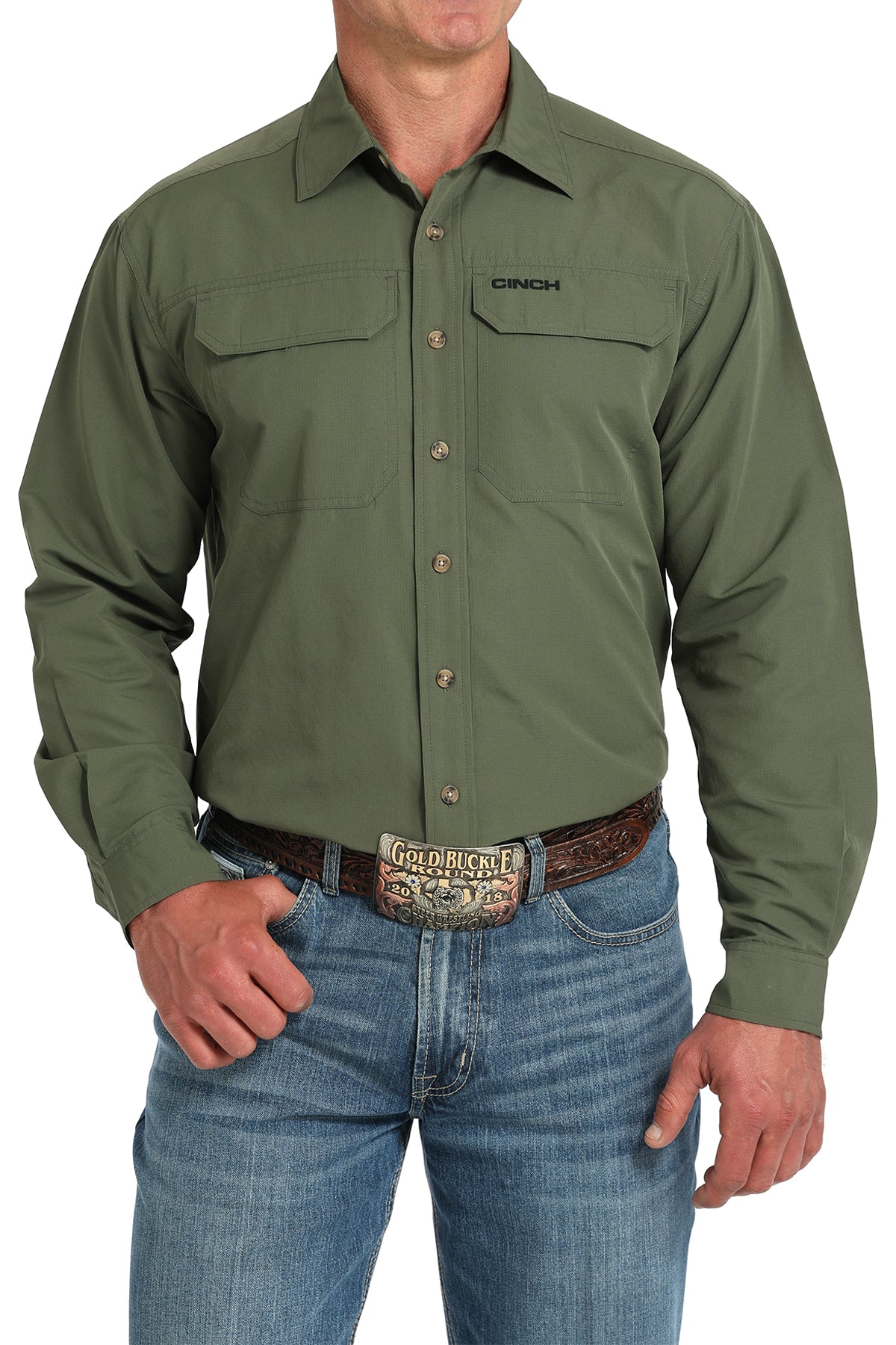 Cinch Men's ArenaFlex Solid Olive Western Shirt