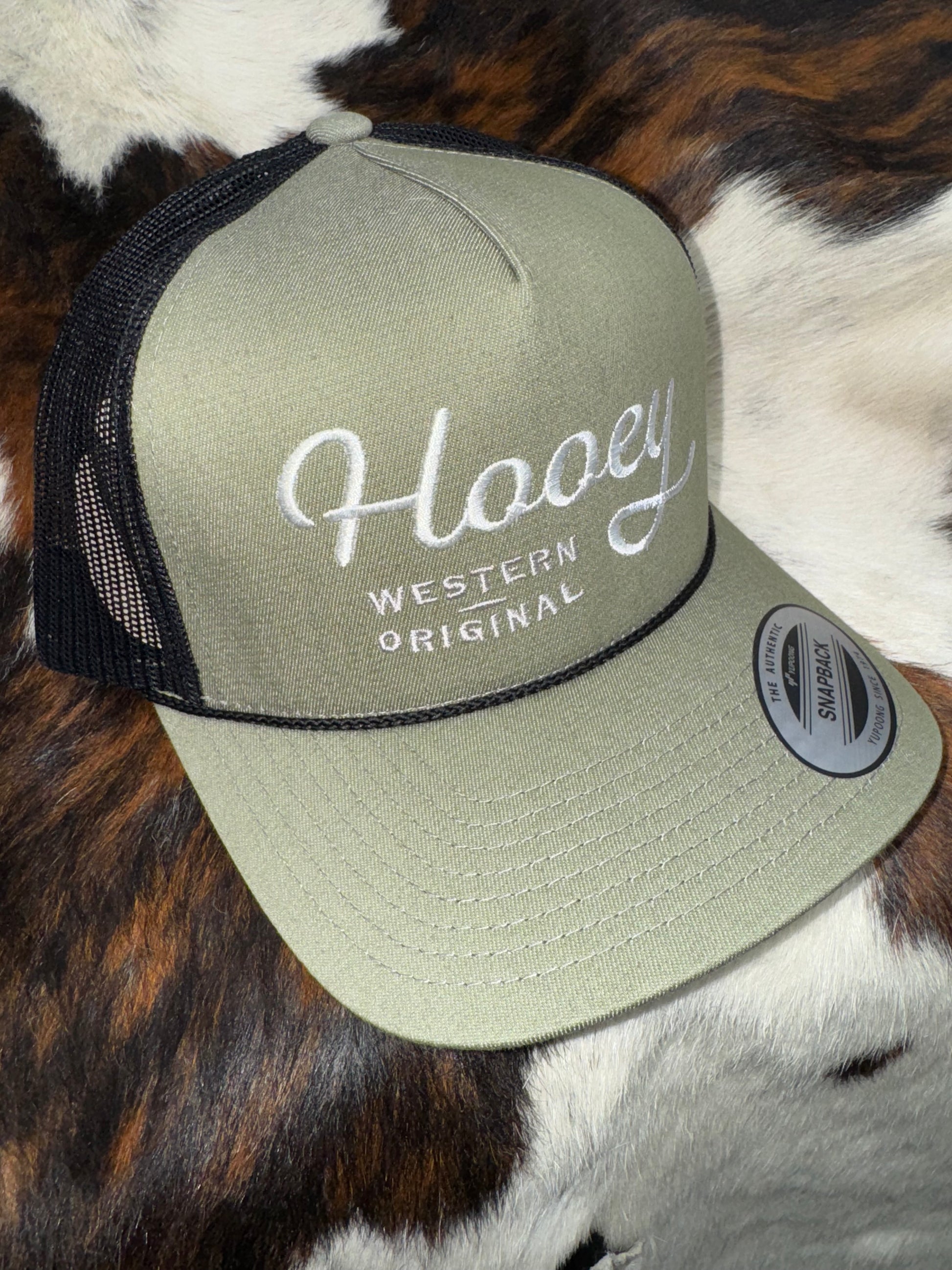 - "Hooey" White Stitching