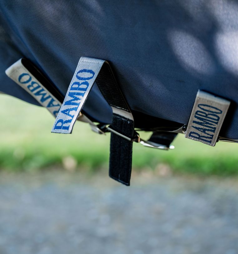 Other features include a contoured detachable hood for greater blanketing options, integrated liner loops for full compatibility with our extensive liner collection, reflective strips, wipe clean tail cord, and three crossed removable surcingle straps integrating the Rambo® Safety Surcingle System.