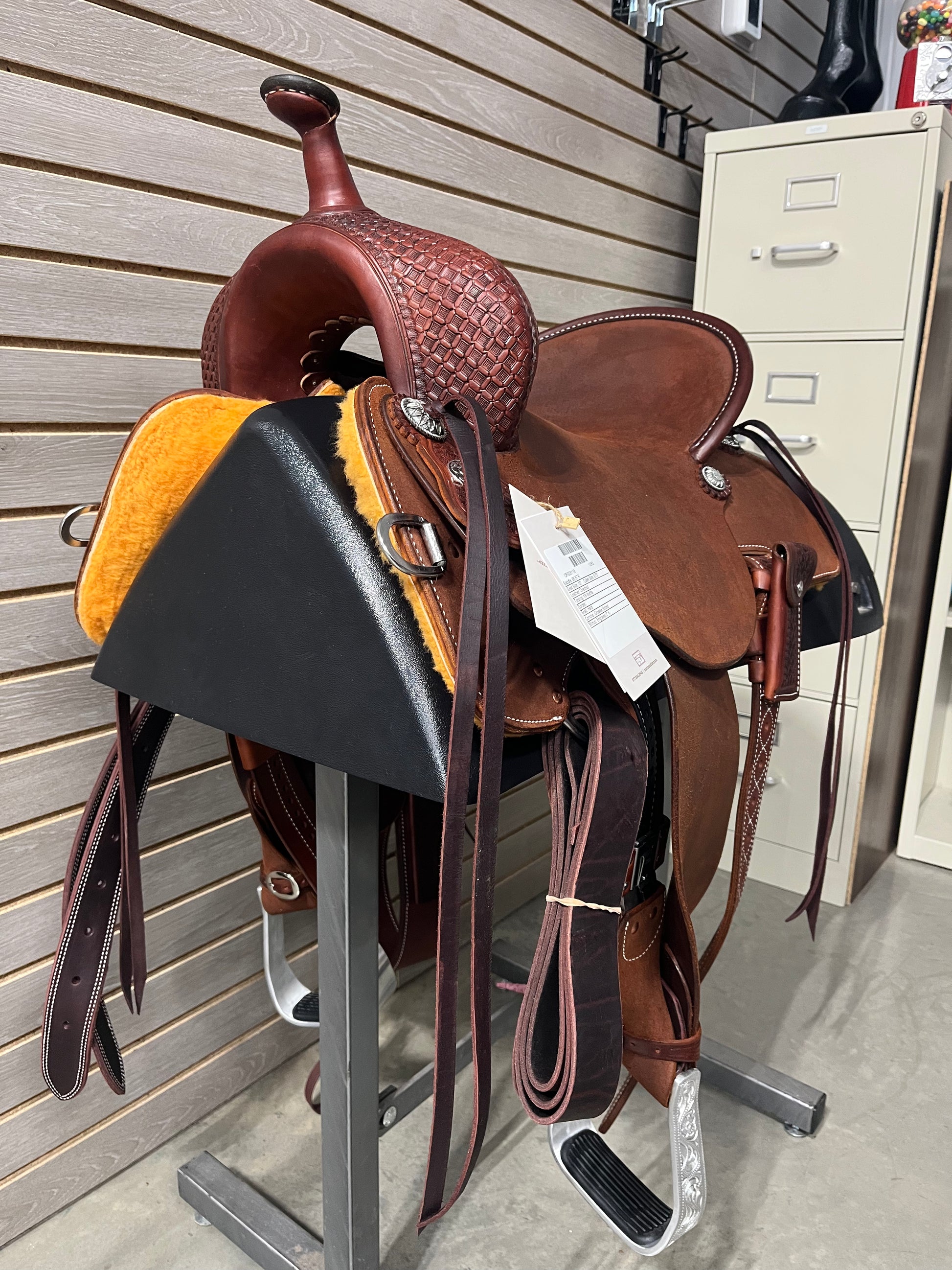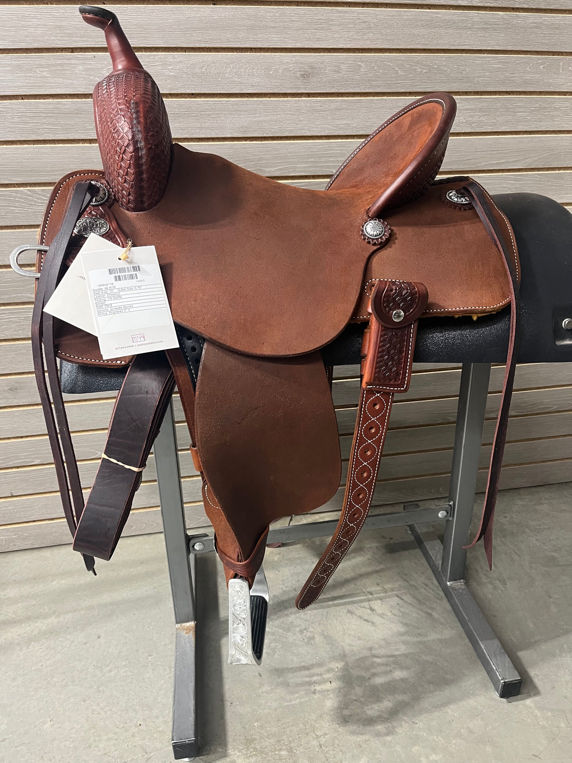 Chestnut Roughout with 1/8 Waffle Tooling. Hard Seat with a Pencil Roll.
