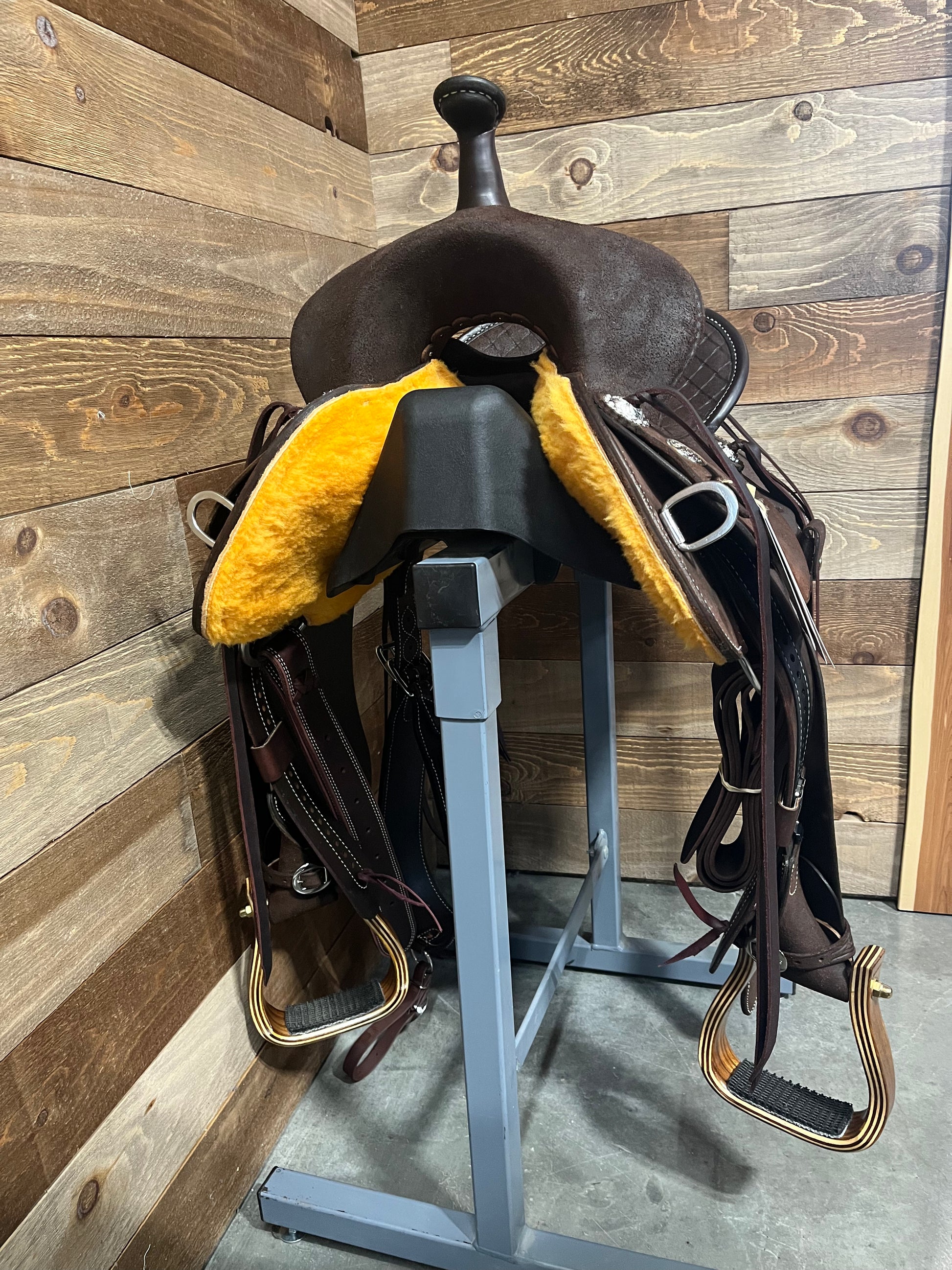 Chocolate Roughout. Quilted Stamped Hard Seat with a Pencil Roll.