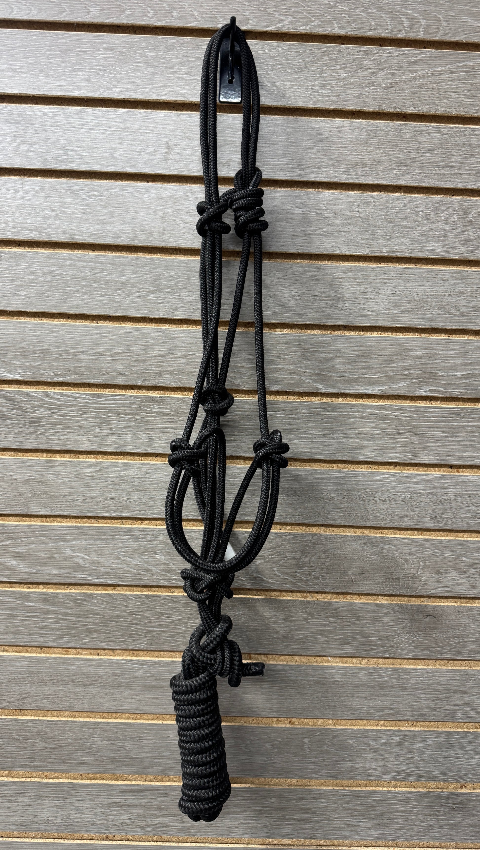 Rope halter with black lead rope