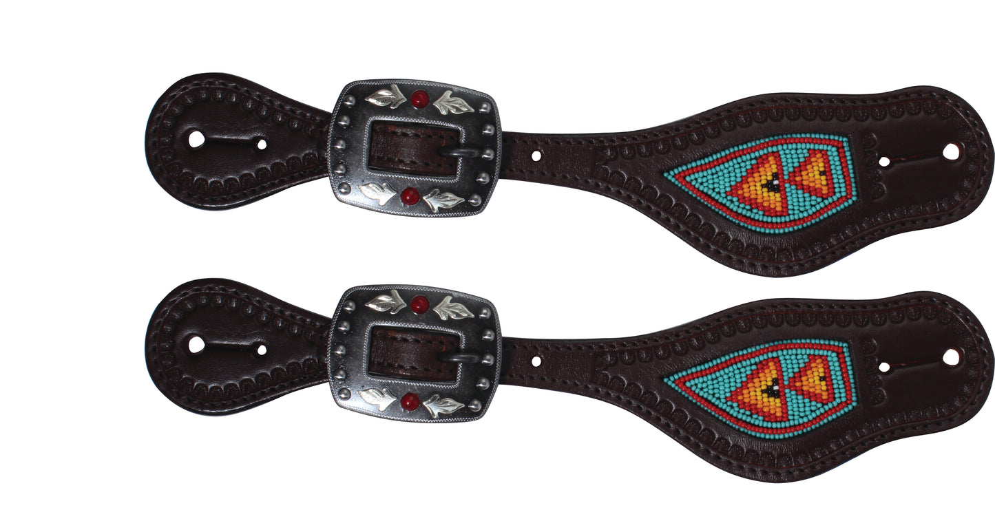Single-ply, stitched leather with eye-catching buckles and beaded insert.