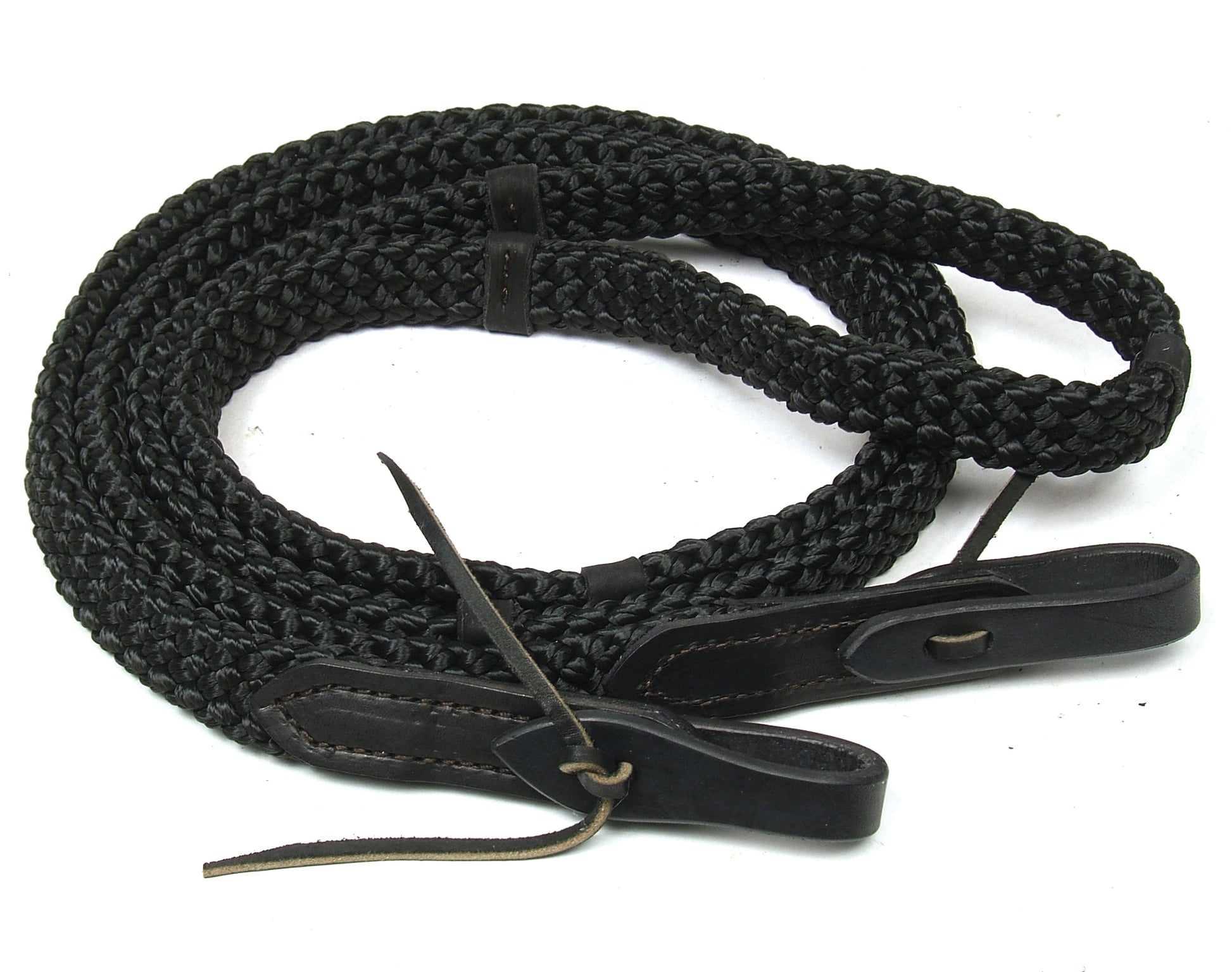 Great for training lessons and trail! 9’ rein has markers for balanced hand placement and is made from a unique polypropylene custom braid that feels soft, yet substantial while providing a good grip in any conditions. Waterloops weight the rein at the bit for better response. New turquoise color is accented with rich chocolate loops and tail-end popper.