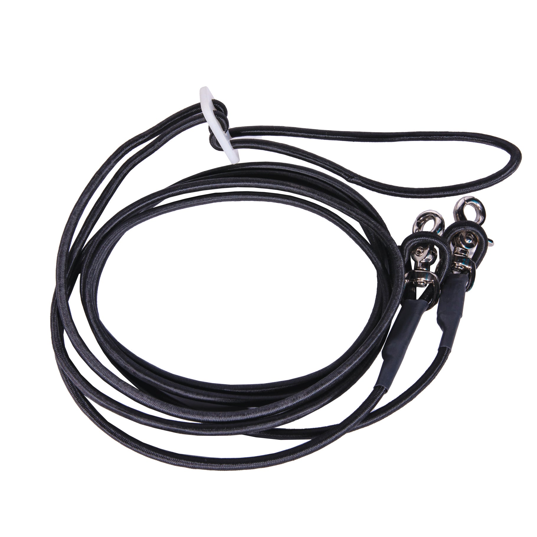 *Training tool made from 1/4” bungee cord, which provides just the right amount of give to teach the horse to yield to pressure without resistance *Encourages the horse to stretch over their back and engage their hindquarters. *Trigger snaps and adjustable stop for easy use *Made in the USA