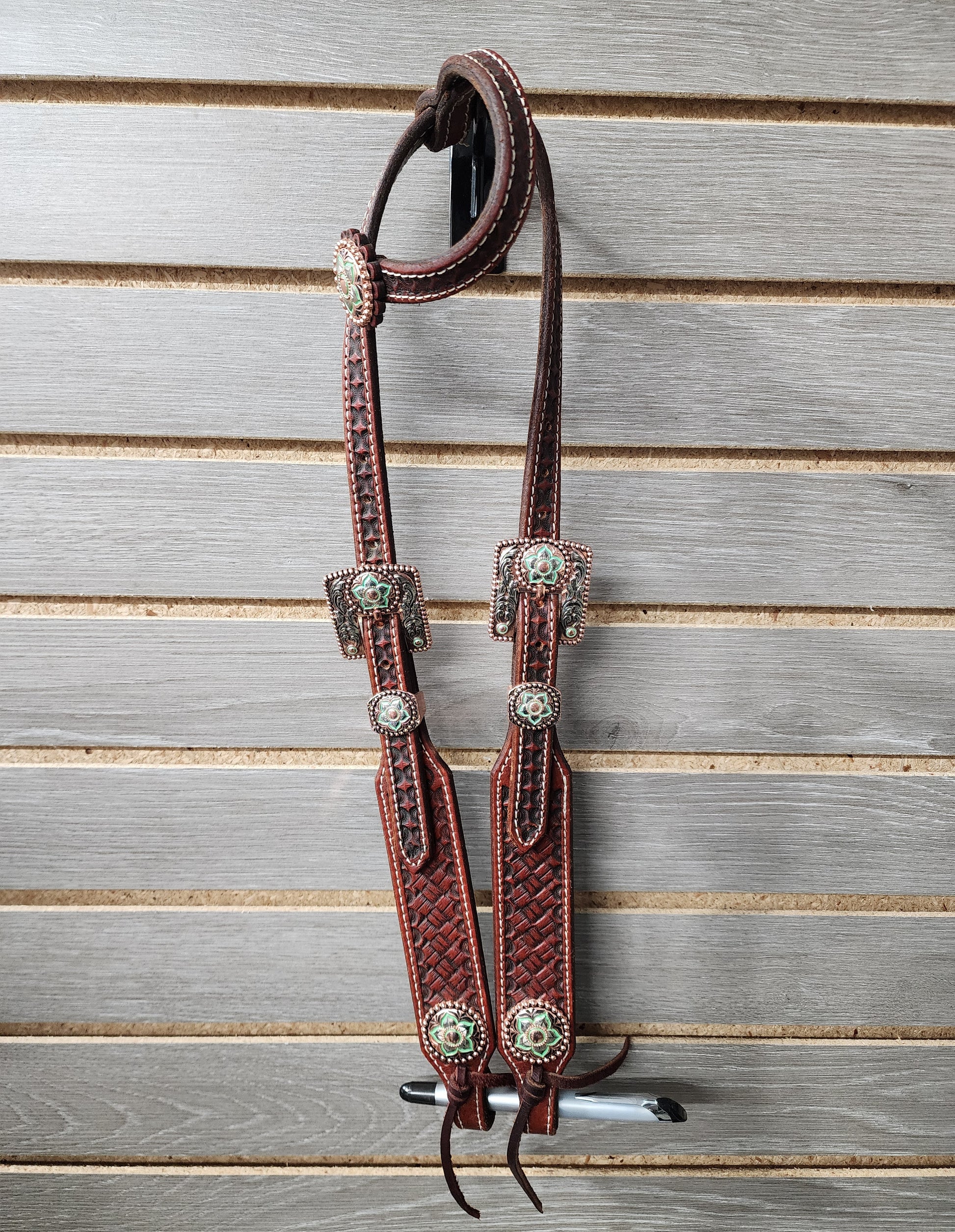 Rafter S. "Turquoise Flowers on Copper" One Ear Headstall