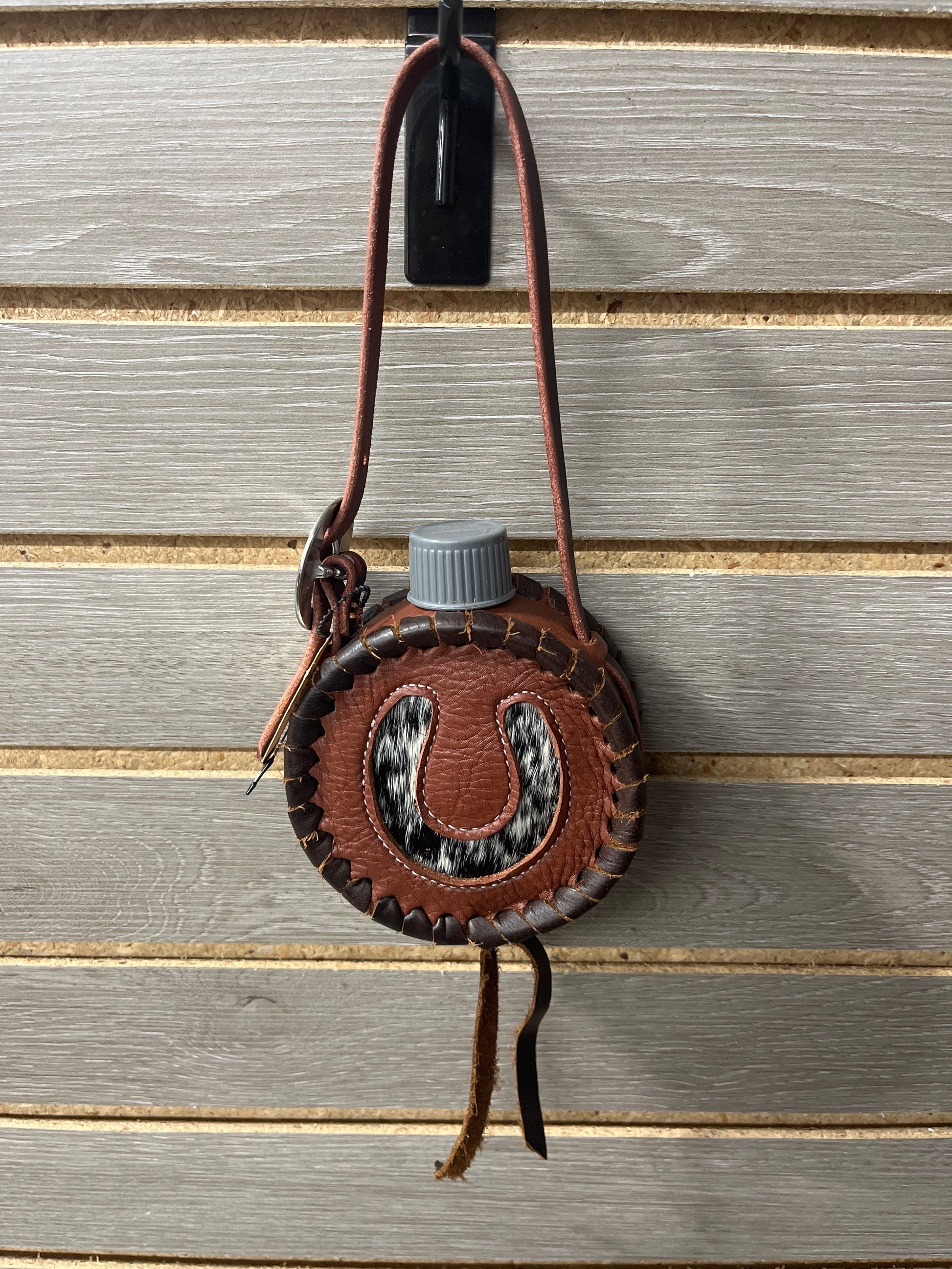 Leather and hair on hide mini canteen.