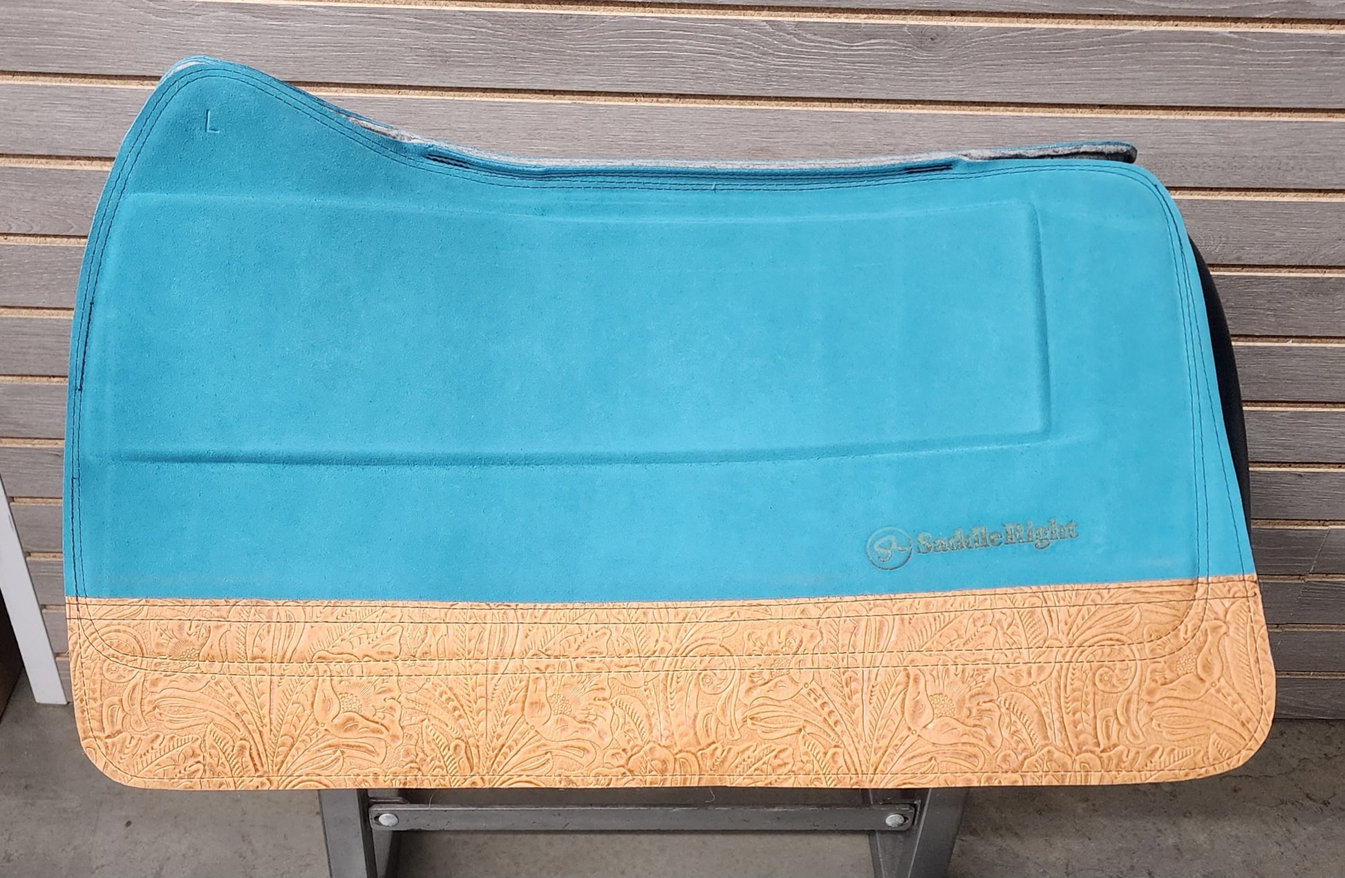 SaddleRight Legacy Saddle Pad 28" x 32" - Teal Suede & Tan Floral