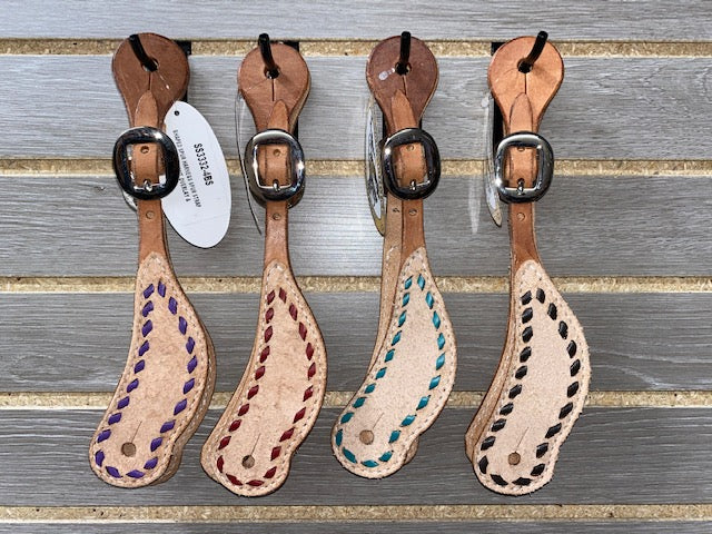 San Saba Shaped Spur Straps - Roughout with Buckstitch