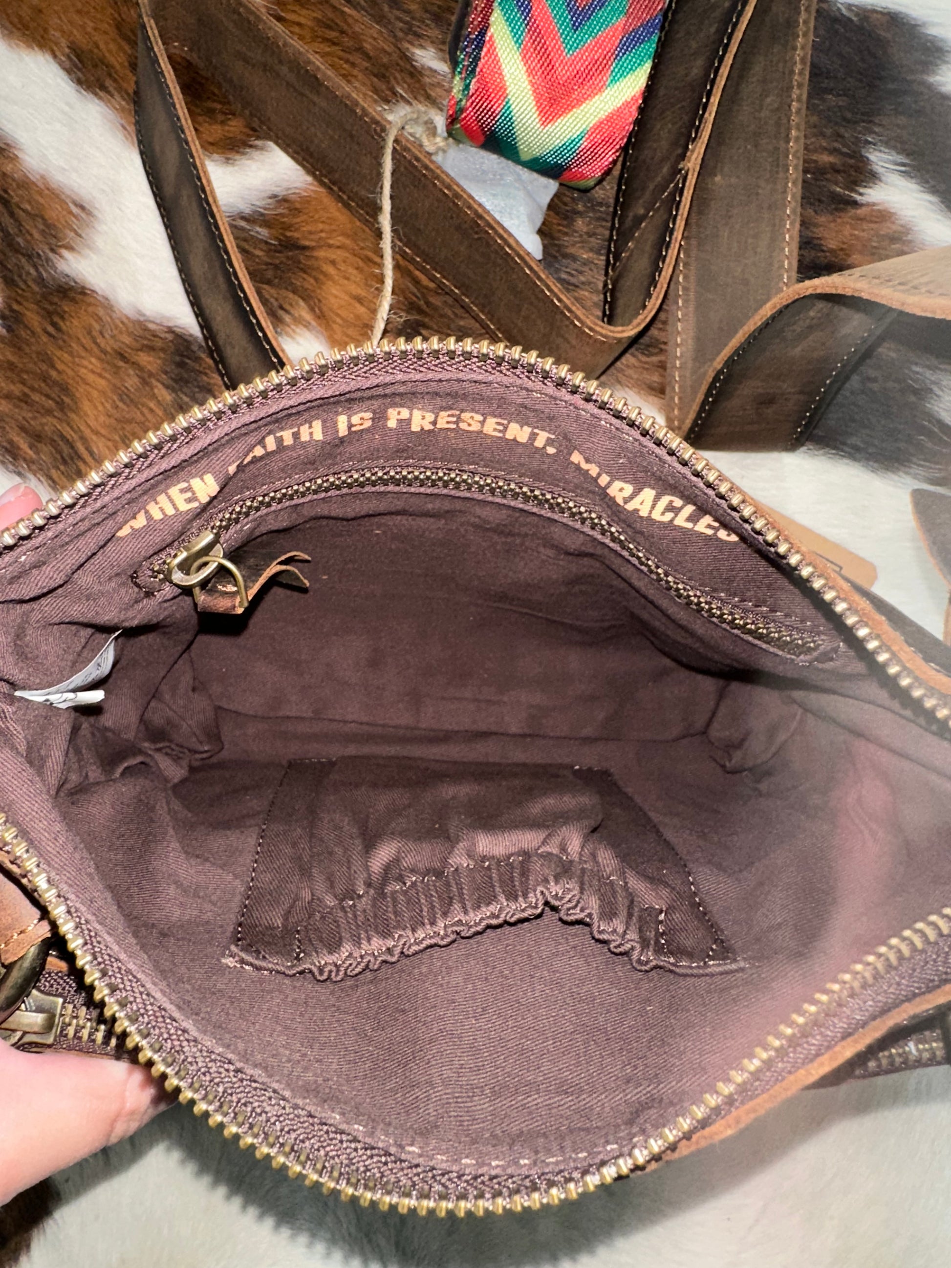The Basic Bliss Lily Crossbody has a fashionable sleek look with a choice of a leather strap or a colorful serape strap making it perfect for any occasion.