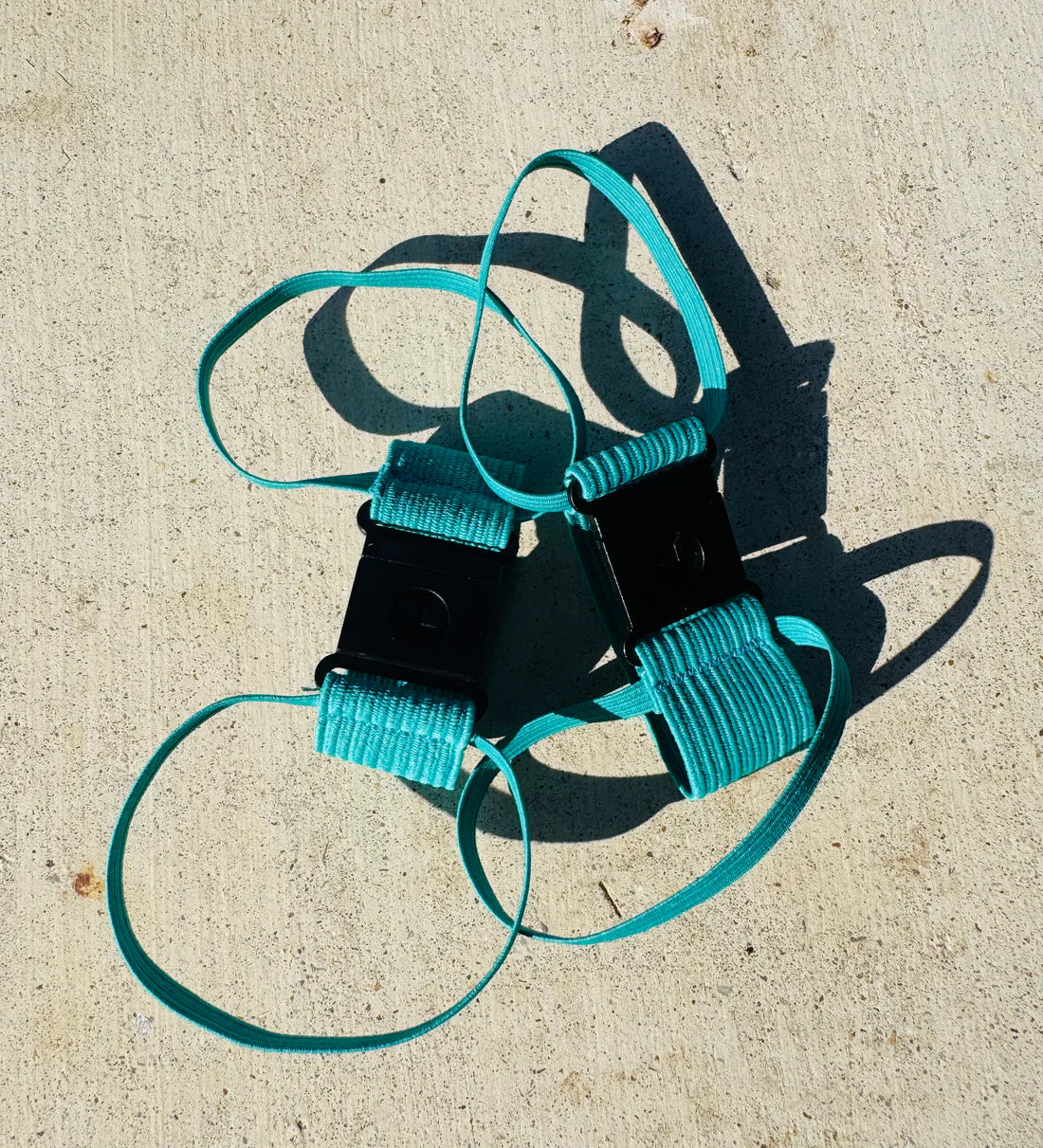 This device is designed to secure barrel racers feet in their stirrups, while also allowing a safe escape in the event of an emergency. The bands can be attached to a stirrup using the safety release buckle and remain on the stirrup for continued use. The elasticity of the band allows them to fit riders of various different boot, and stirrup sizes!