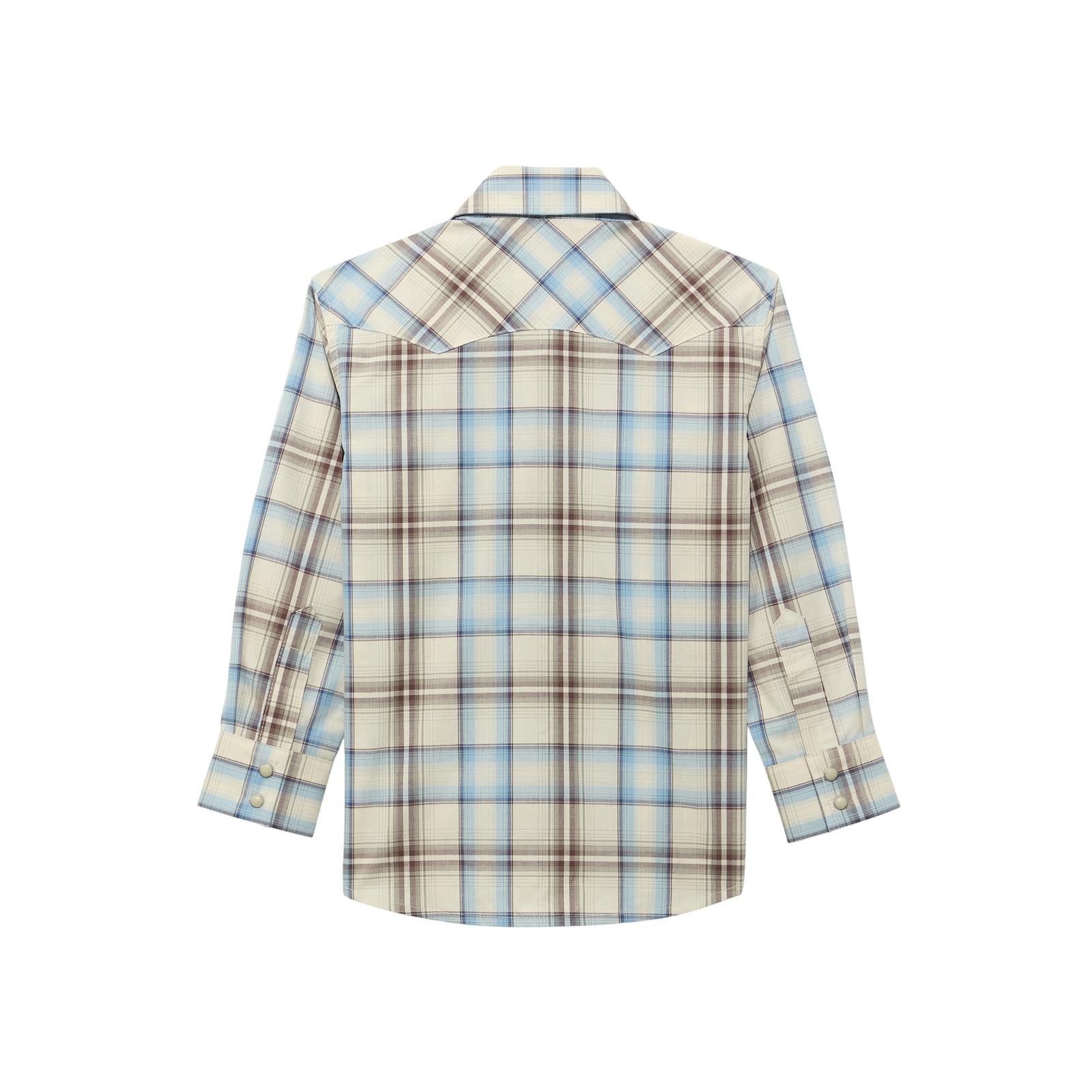 Wrangler Boy's Retro Ecru/Blue Plaid Western Shirt